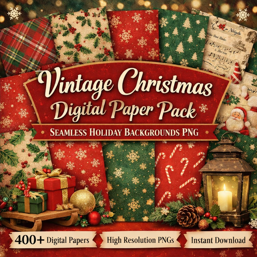 🎄 Vintage Christmas Digital Paper Pack – Festive Backgrounds for Endless Creativity 🎄